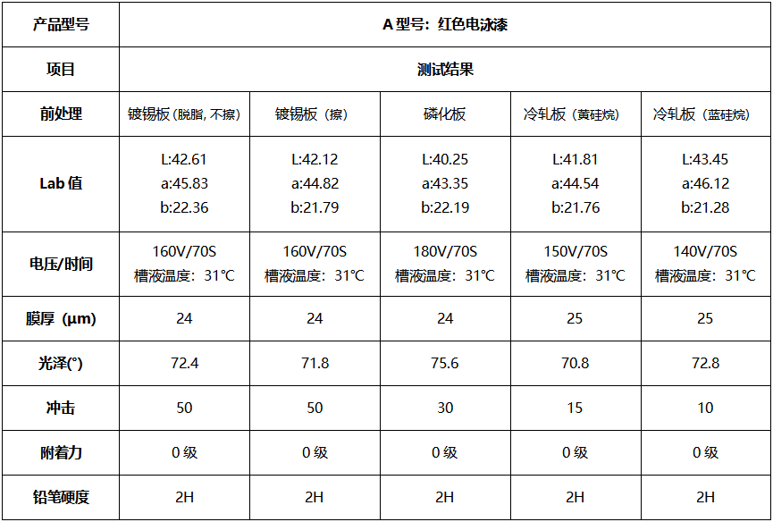 备注:以上前处理类型选用市场上最常见、使用频率较高的型号。(A型号磷化、B型号硅烷)